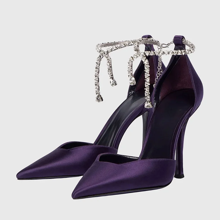 Purple Stiletto Heel Rhinestone Ankle Strap Pumps for Women