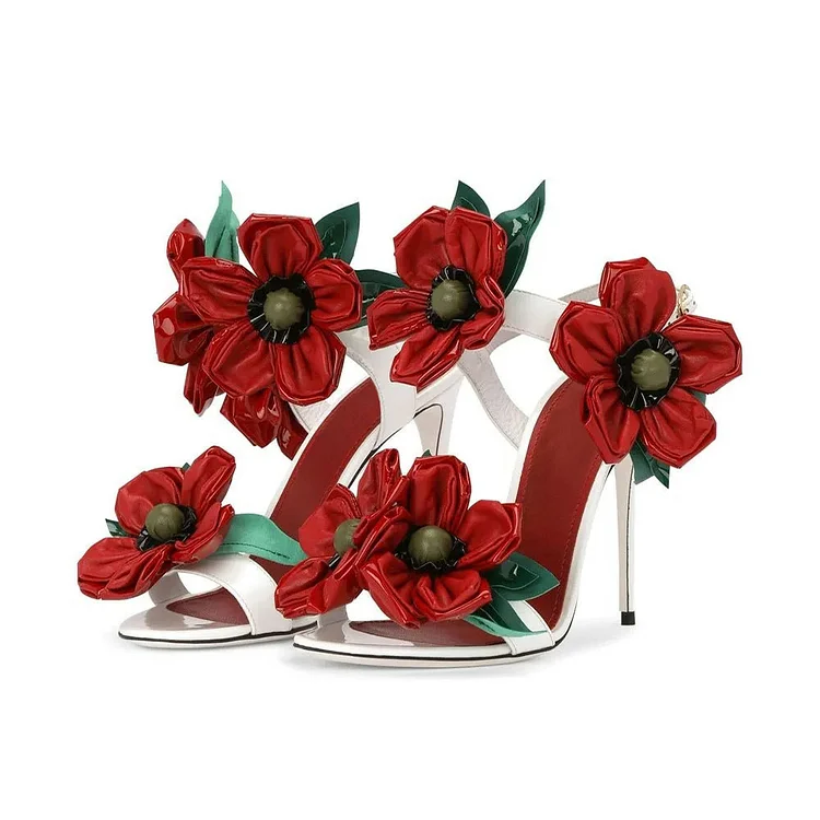Elevate your style with these stunning White and Red Open Toe Flower Decor Strap Women's Heel Sandals. Perfect for any occasion, these sandals blend elegance with a pop of vibrant color.