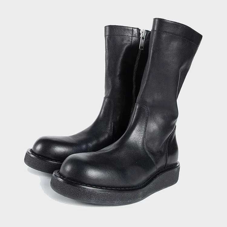 Black Round Toe Side Zipper Platform Short Boots for Women
