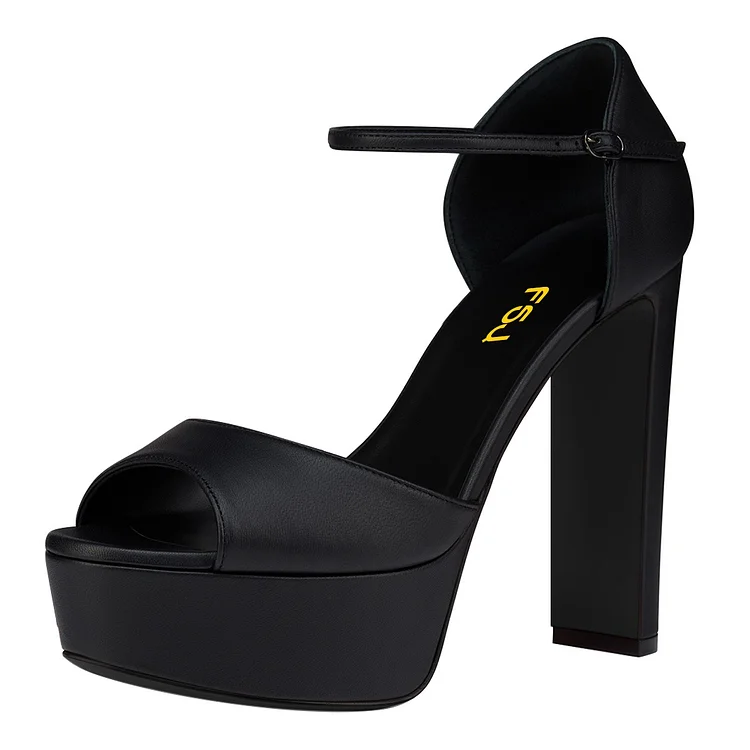 Elevate your style with our Black Ankle Strap Open Round Toe Chunky Heel Platform Sandals. Perfect for any occasion, these sandals blend fashion and comfort effortlessly.