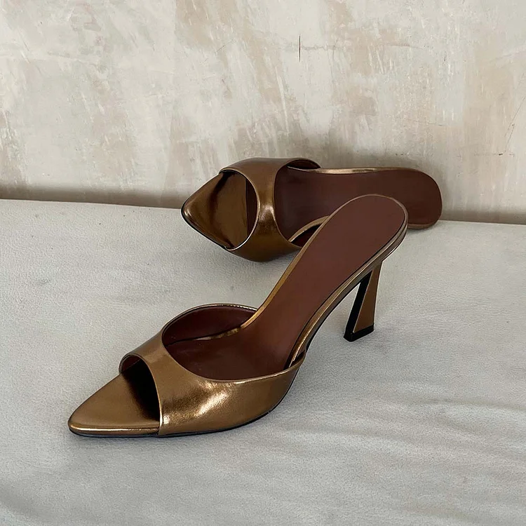 Elevate your style with these Women's Classic Gold Metallic Peep-Toe High-Heel Mules—the perfect blend of elegance and sophistication, ideal for adding a touch of glamour to any outfit.