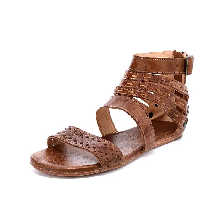 Brown Strappy Open Toe Back Zipper Gladiator Shoes for Ladies