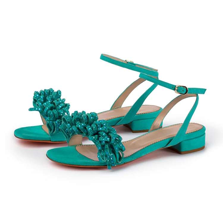 Step into summer style with our Turquoise Ankle Strap Rhinestone Decor Open Toe Flat Summer Sandals. Effortlessly chic, these sandals add a touch of sparkle to your warm-weather ensemble.