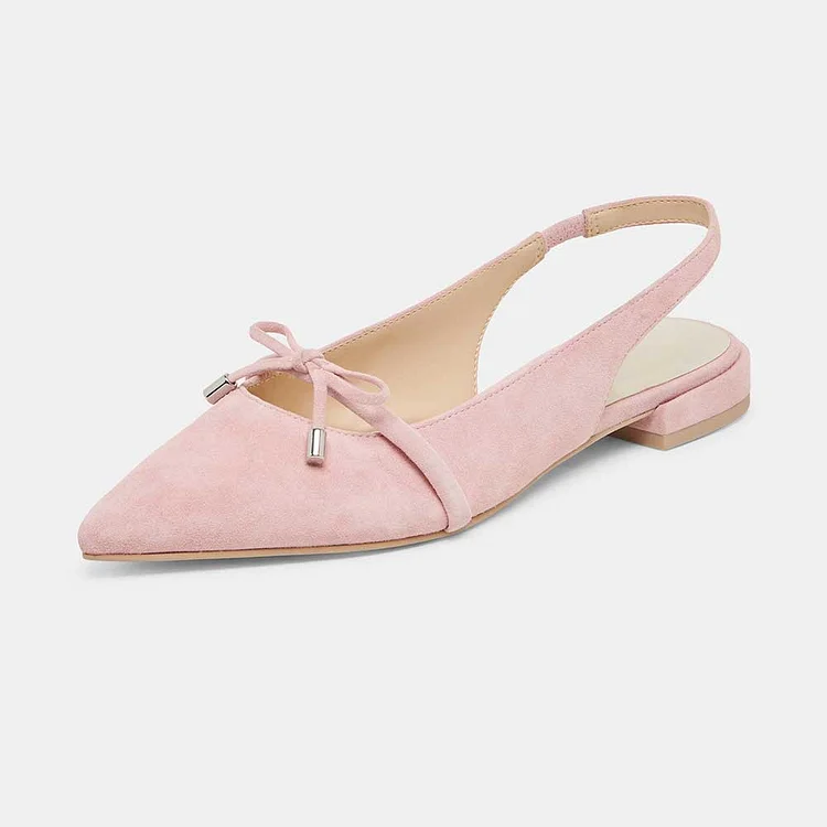 Elegant Pink Pointed Toe Bow Decor Slingback Flat Shoes for Women