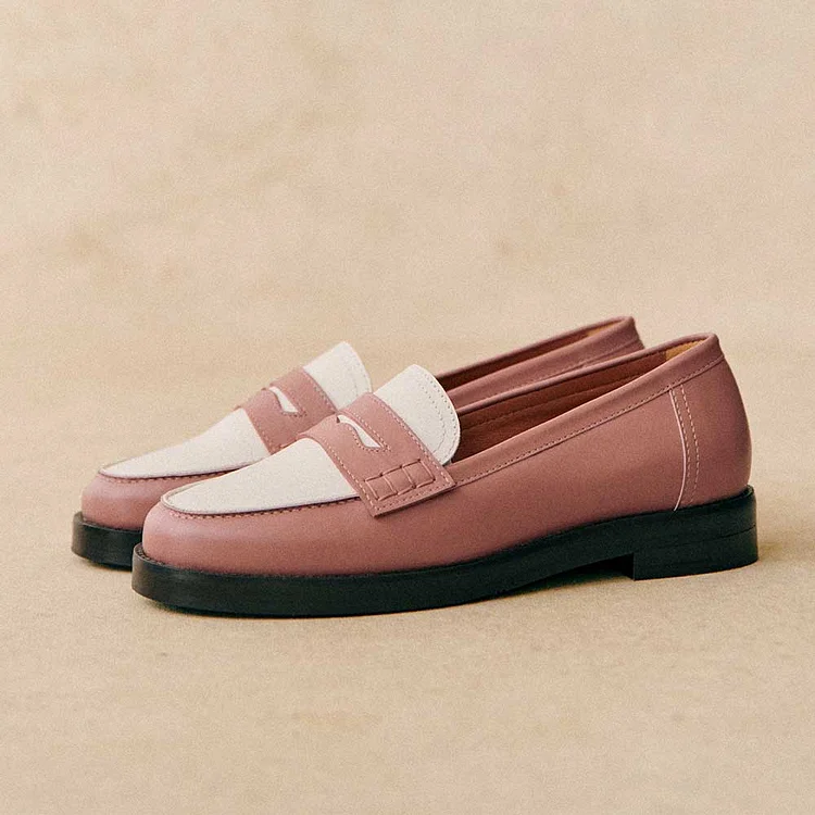 FSJ Pink and White Patchwork Round Toe Flat Loafer Shoes Women