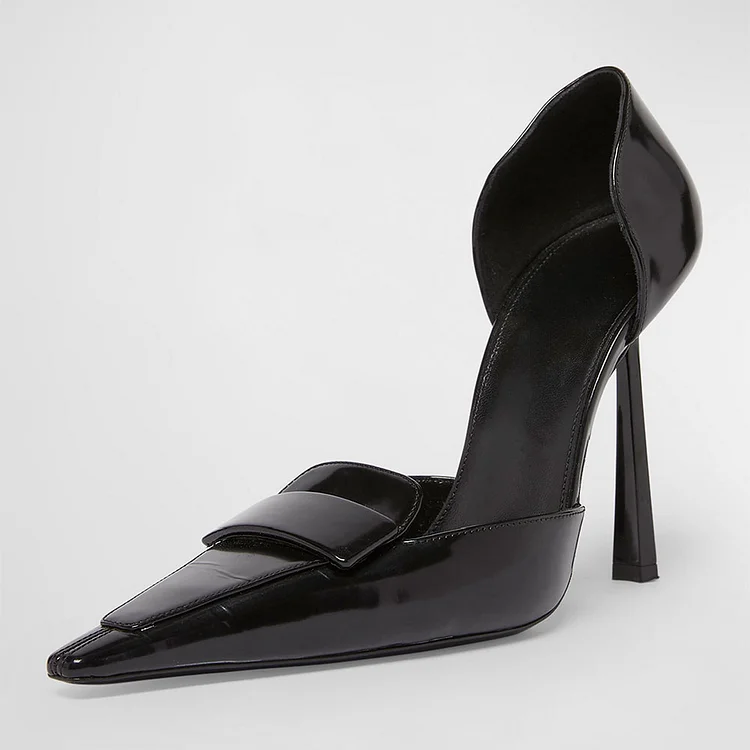 Elevate your style with our Patent Leather Stiletto Heel Slip-On Loafer D'Orsay Black Pumps. These sleek pumps exude sophistication, combining comfort and elegance effortlessly. Perfect for any occasion.