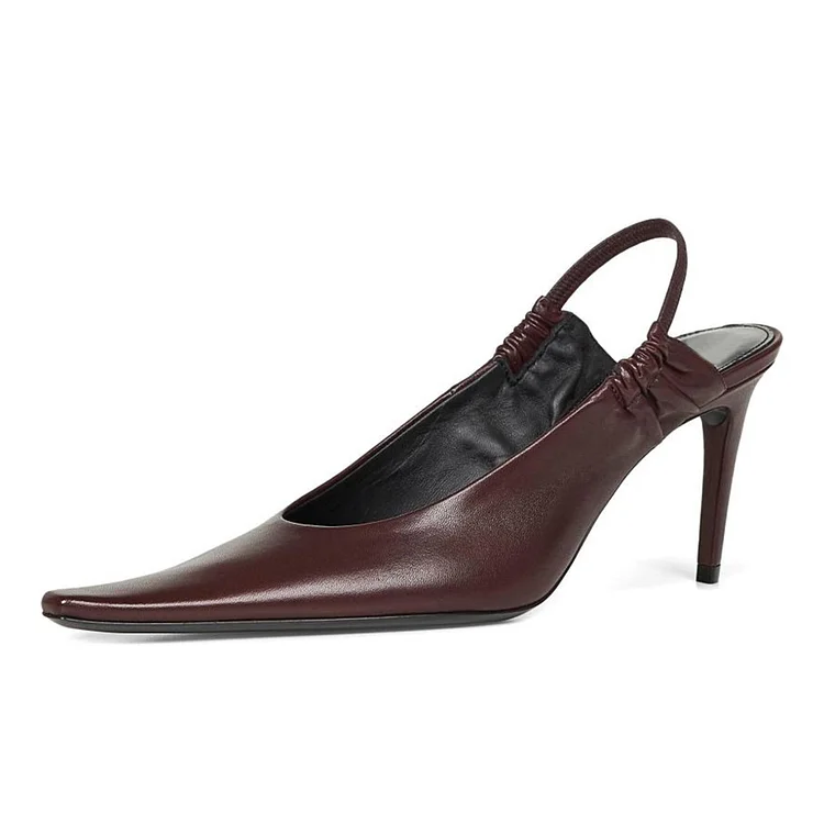 Burgundy Pointed Toe Pleated Stiletto Heel Slingback Pumps