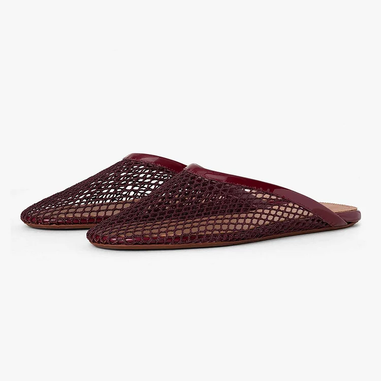 Comfortable Burgundy Round Toe Mesh Flat Women's Mules Shoes
