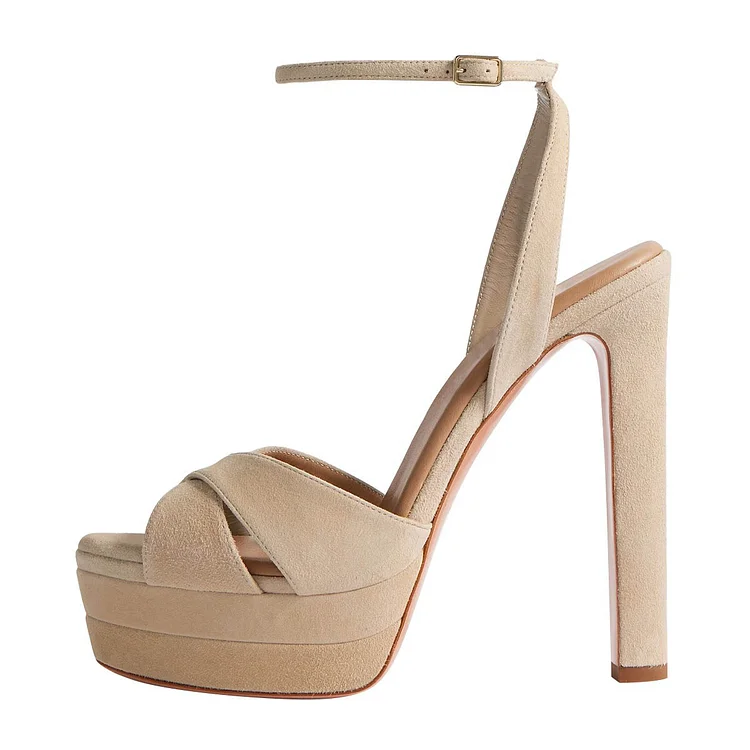 Step into sophistication with FSJ Beige Peep Toe Ankle Strap Platform Chunky High Heels. Elevate your style effortlessly with these versatile and chic shoes, perfect for any occasion.