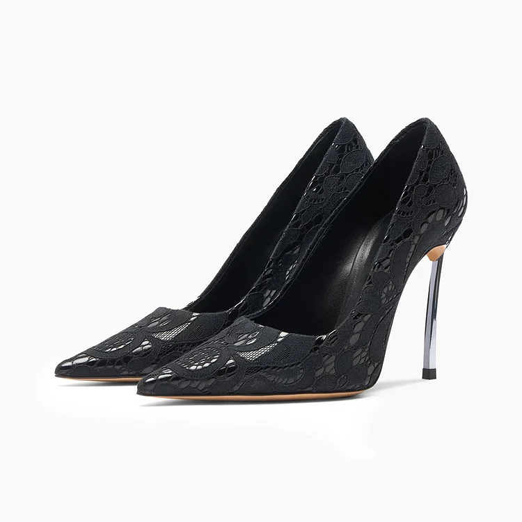 Elegant and chic, these Lace Stiletto Heel Slip-On Black Pumps blend sophistication with style. Featuring a pointed toe design, they are the perfect choice for women seeking timeless fashion allure.