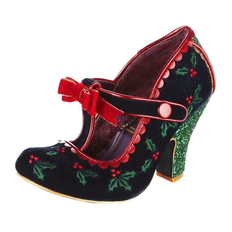 Elevate your style with our Multicolor Bow T-Bar Round Toe Embroidery Glitter Mary Jane Heels. Vibrant hues, charming bow detail, and glitter accents create a whimsical yet sophisticated statement piece.