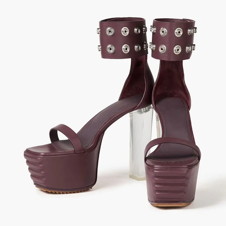Purple Open Toe Snap Ankle Strap Platform High Heels Sandals