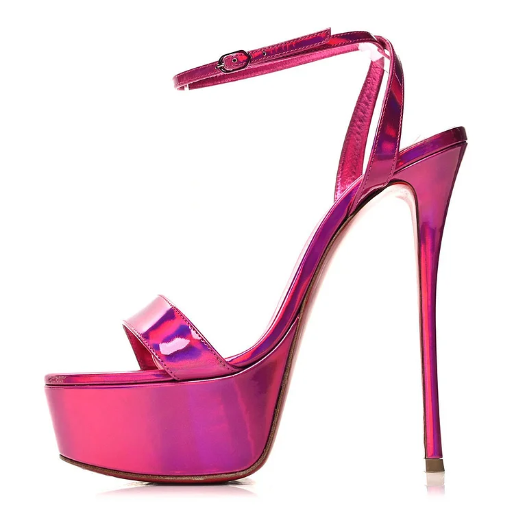 Fuchsia Patent Leather Ankle Strap Stiletto Heel Platform Sandals
