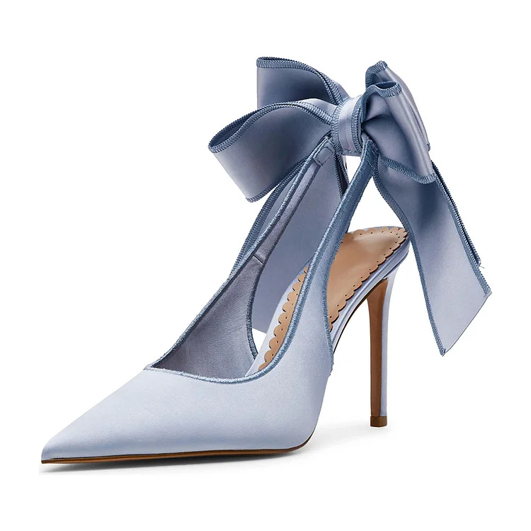 Elegant and alluring, these Blue Satin Pointed Toe Back Bow Stiletto Heel Slingback Pumps blend sophistication with charm. Featuring a delicate bow detail, they are perfect for formal occasions.