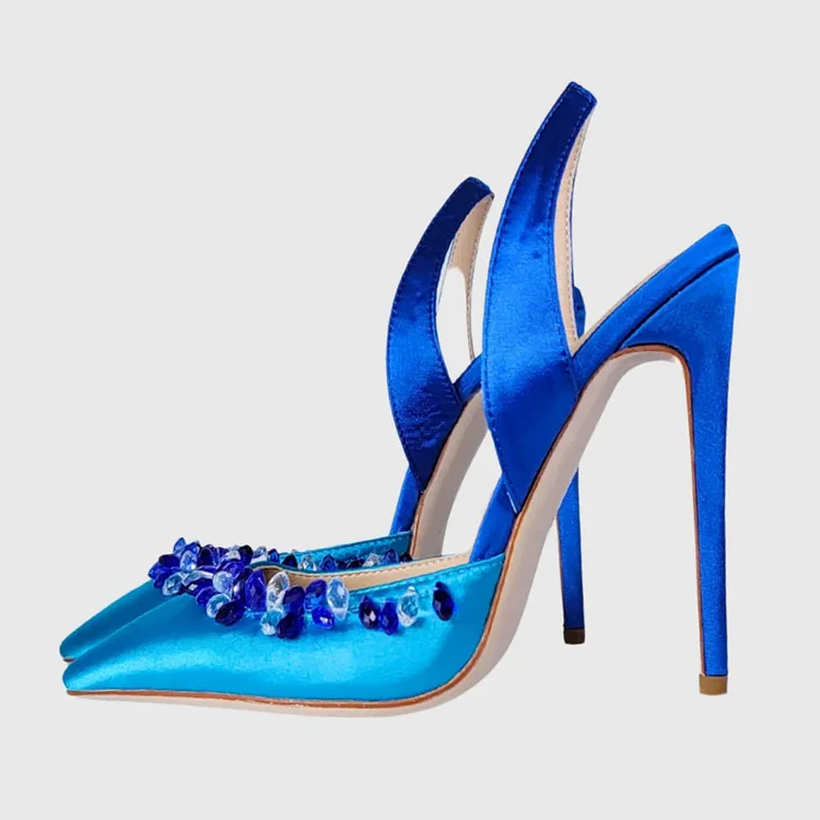 Blue Stiletto Heel Rhinestone Embellished Elegant Slingback Shoes
