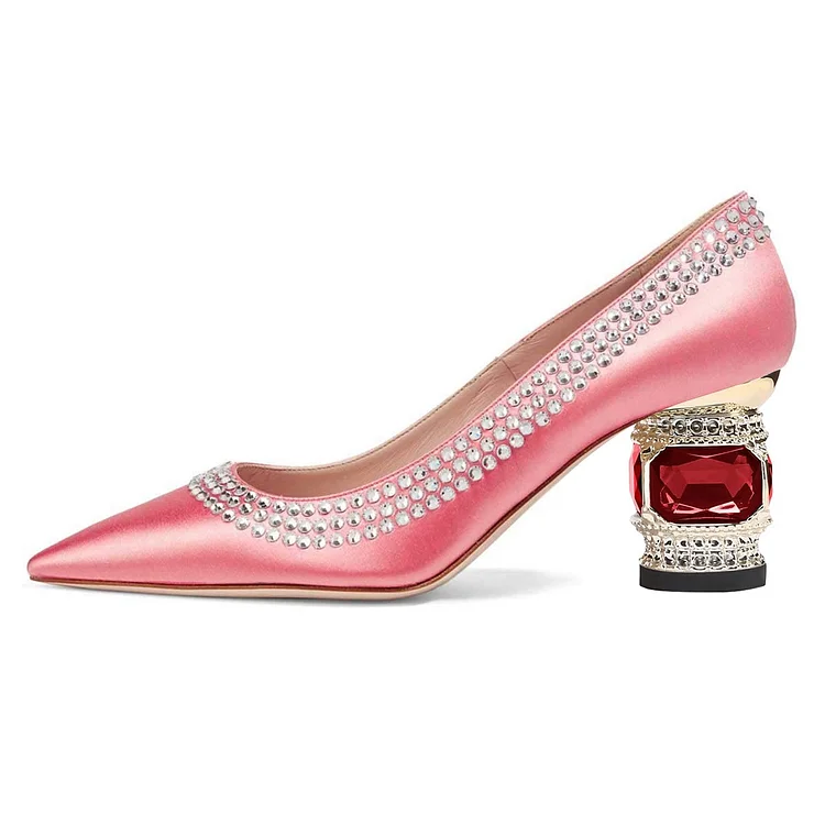 Satin Rhinestone Embellished Pointed Toe Women's Pink Heels