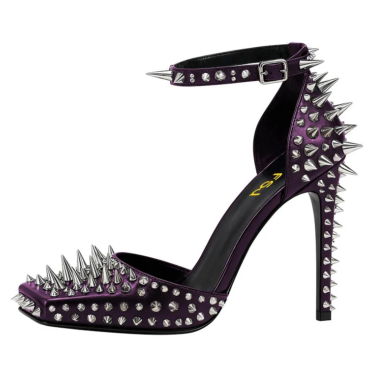 Step up your style with our Fashion Purple Square Toe Rivet Decor Ankle Strap Pumps Heels. These stunning heels feature a contemporary design, an ankle strap for support, and edgy rivet embellishments.