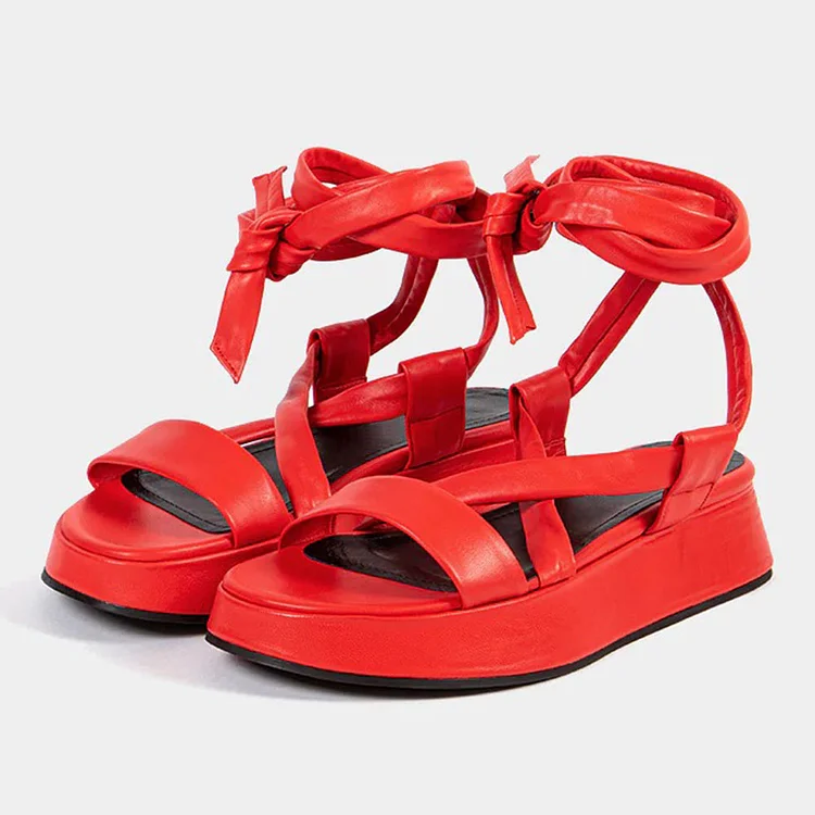 Step into summer with style in these vibrant Red Wedge Heel Lace-Up Platform Sandals. Featuring an open-toe design and a comfortable wedge heel, this is perfect for adding a pop of color to your outfit.