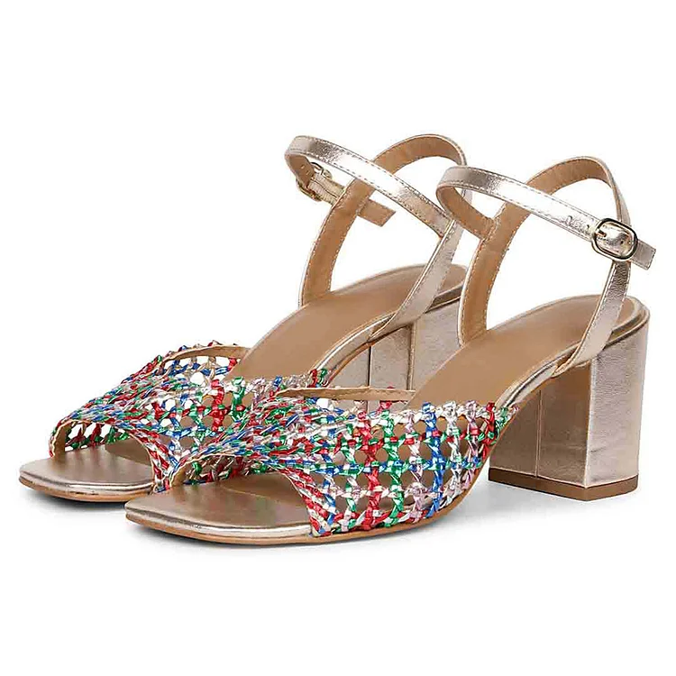 Step into summer elegance with our Colorful Open-Toe Woven Cutout Ankle Strap Block Heel Sandals. Vibrant hues, intricate weaving, and a stylish block heel create the perfect blend of style and comfort.