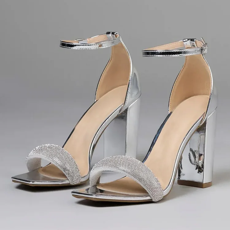 Step out in style with these Silver Ankle Strap Open Toe Rhinestone Decor High Heels Sandals. The perfect blend of elegance and glamour, these sandals are sure to elevate any outfit effortlessly.