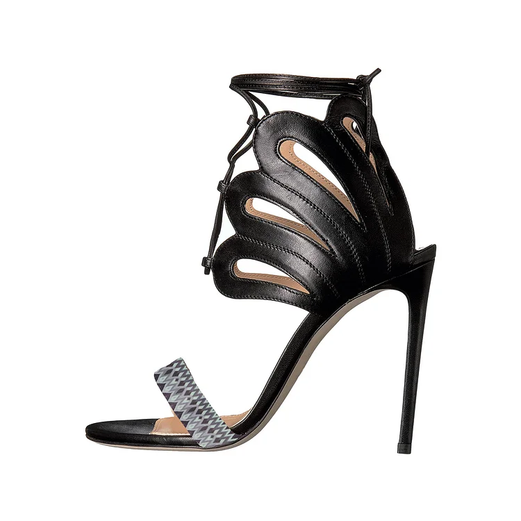 Women's Black Open Toe Stiletto Heels Cut Out Strappy Sandals