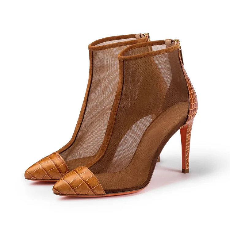 Croc Embossed Patchwork Zipper Short Boots for Women in Brown