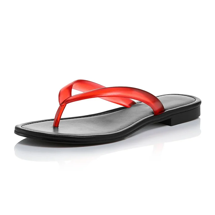 Black and Red Open Toe Flip-Flop Style Flat Slide Sandals Women