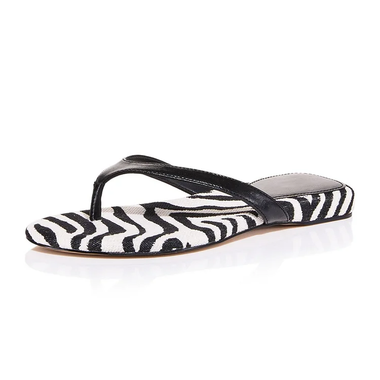 Black and White Zebra Print Open Toe Slip-On Mules Sandals