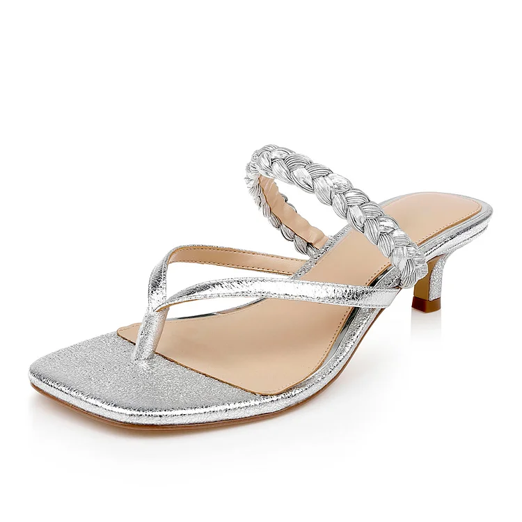 Chic Silver Open Toe Braided Strap Flip-Flop Low Heel Sandals