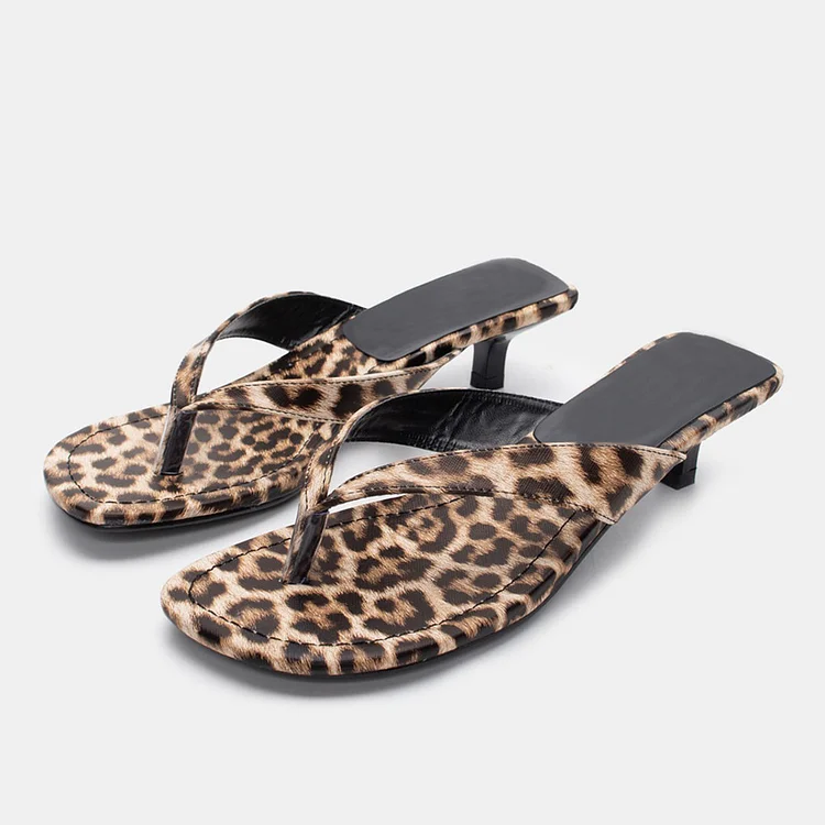 Step out in style with these Leopard Print Open Round Toe Kitten Heel Flip Flops for Women. Combining comfort and trend, these flip flops add a fierce touch to any outfit.