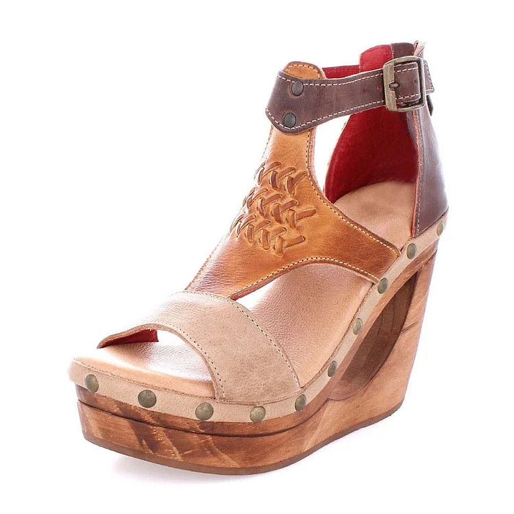 Step into style with these Triple Color Studded Open Toe Buckle Platform Cutout Wedge Sandals. Striking design features and a blend of colors make them perfect for elevating your summer look.