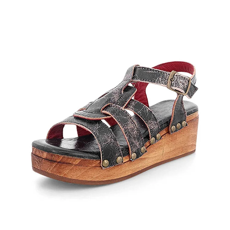 FSJ Studded Open Toe Clog Wedge Heel Caged Black Platform Sandals