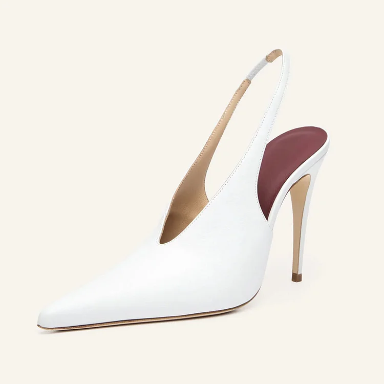 FSJ Classic Pointed Toe Stiletto Heel Slingback White Pumps