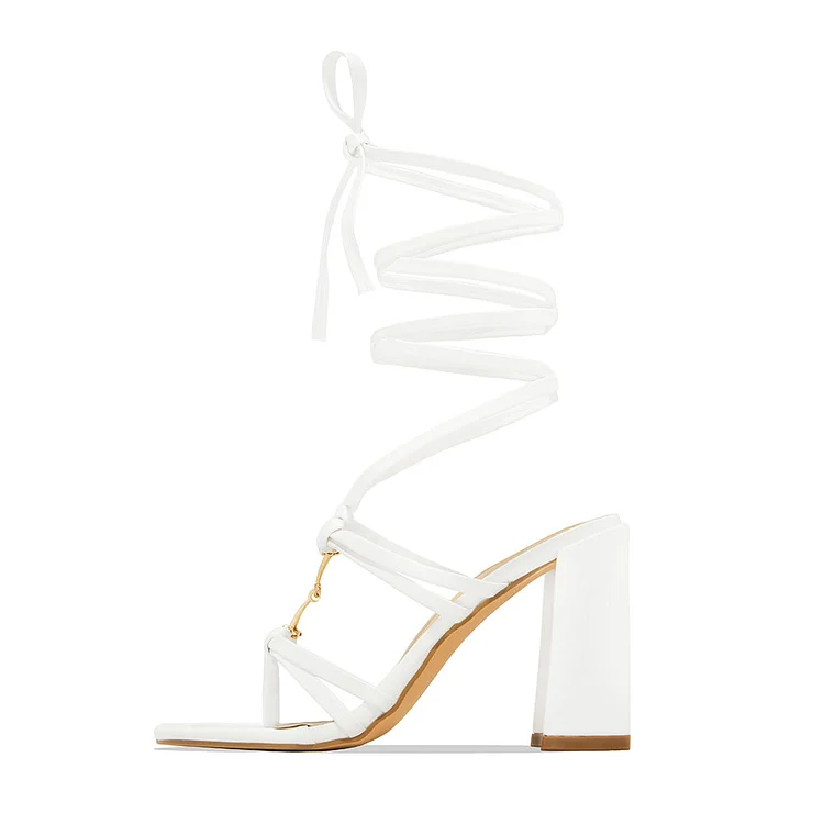 Open Toe Gold Hardware Stylish Strap Heels Sandals in White