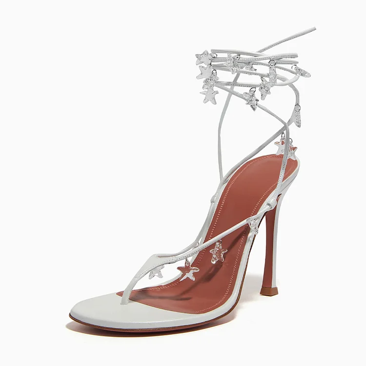 Step into celestial style with our White Open Round Toe Star Charms Strappy High Heel Sandals. Elegant charm meets comfort, creating a stellar look for any occasion.
