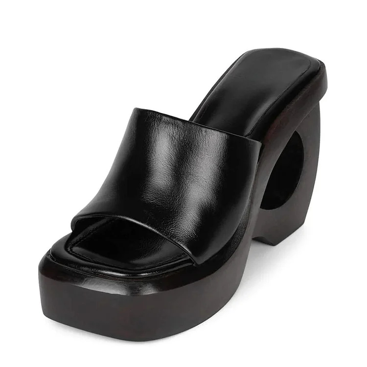 Step into sophistication with our Black Open Toe Cutout Sculptural Wedge Heel Platform Mules. These avant-garde mules blend style and comfort effortlessly, making a bold fashion statement.