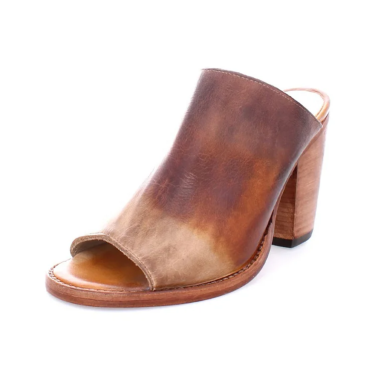 Step into style with our Brown Gradient Chunky Heel Peep Toe Distressed Mules! Effortlessly chic, these shoes feature a trendy chunky heel and peek-a-boo toe design for a fashion-forward look.