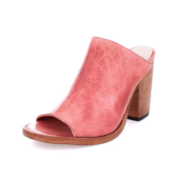 Step into style with FSJ Women's Pink Distressed Peep Toe Slip-On High Heel Mules. These chic shoes blend comfort and fashion effortlessly, perfect for any occasion.
