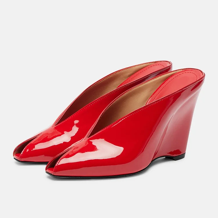 Simple Peep Toe Slip-On Wedge Heel Mules for Women in Red