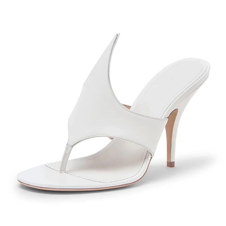 White Open Round Toe Slip-On Stiletto Heel Stylish Mules Sandals