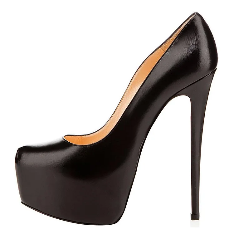 Elevate your style with our Classic Closed Toe Stiletto Heel Black Pumps. Featuring a platform for added comfort, these timeless heels are perfect for any occasion.