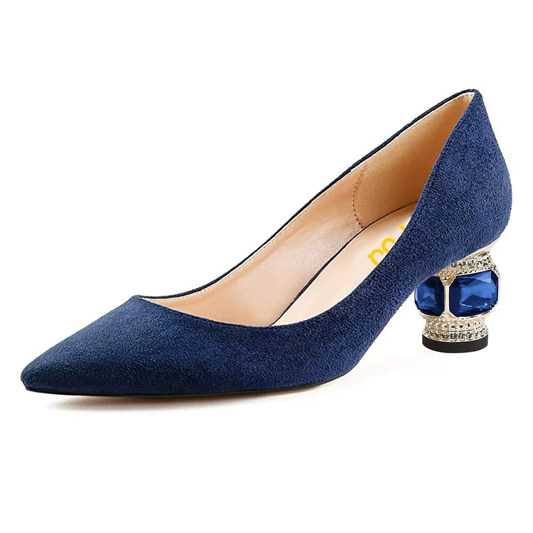 Elevate your evening look with these Classy Navy Party Shoes. Featuring rhinestone embellishments, vegan suede material, and a chic pointed toe design for a touch of elegance and style.