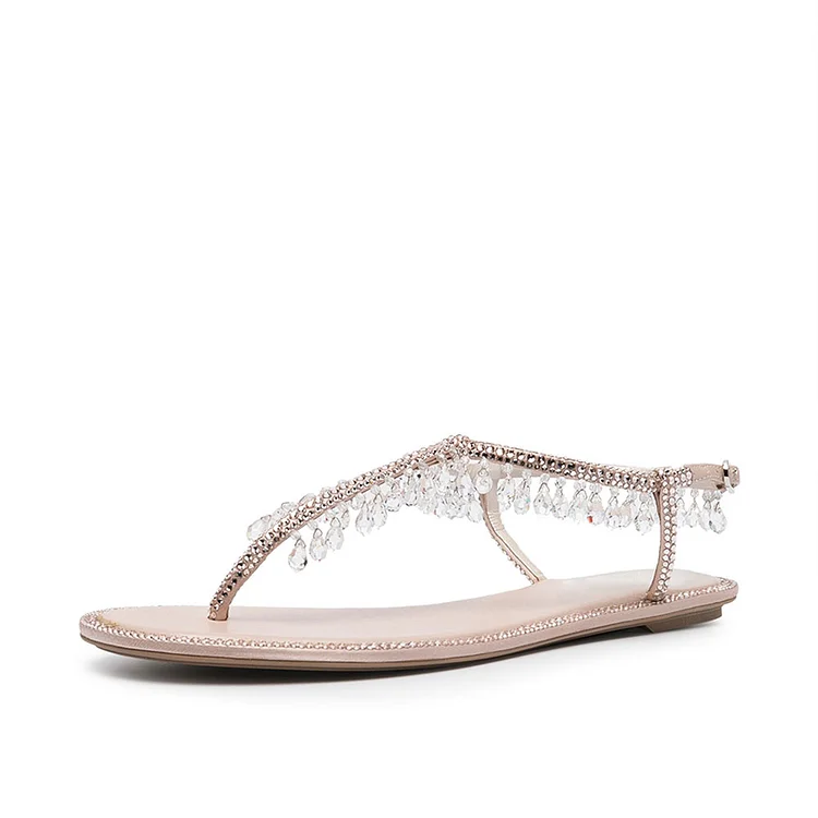 Shine with effortless elegance in our Rhinestone and Chandelier Embellished Flat Thong Sandals, designed to bring a touch of glamour to your everyday look. Adorned with sparkling rhinestones and intricate chandelier details, these sandals combine comfort and sophistication for any occasion.
